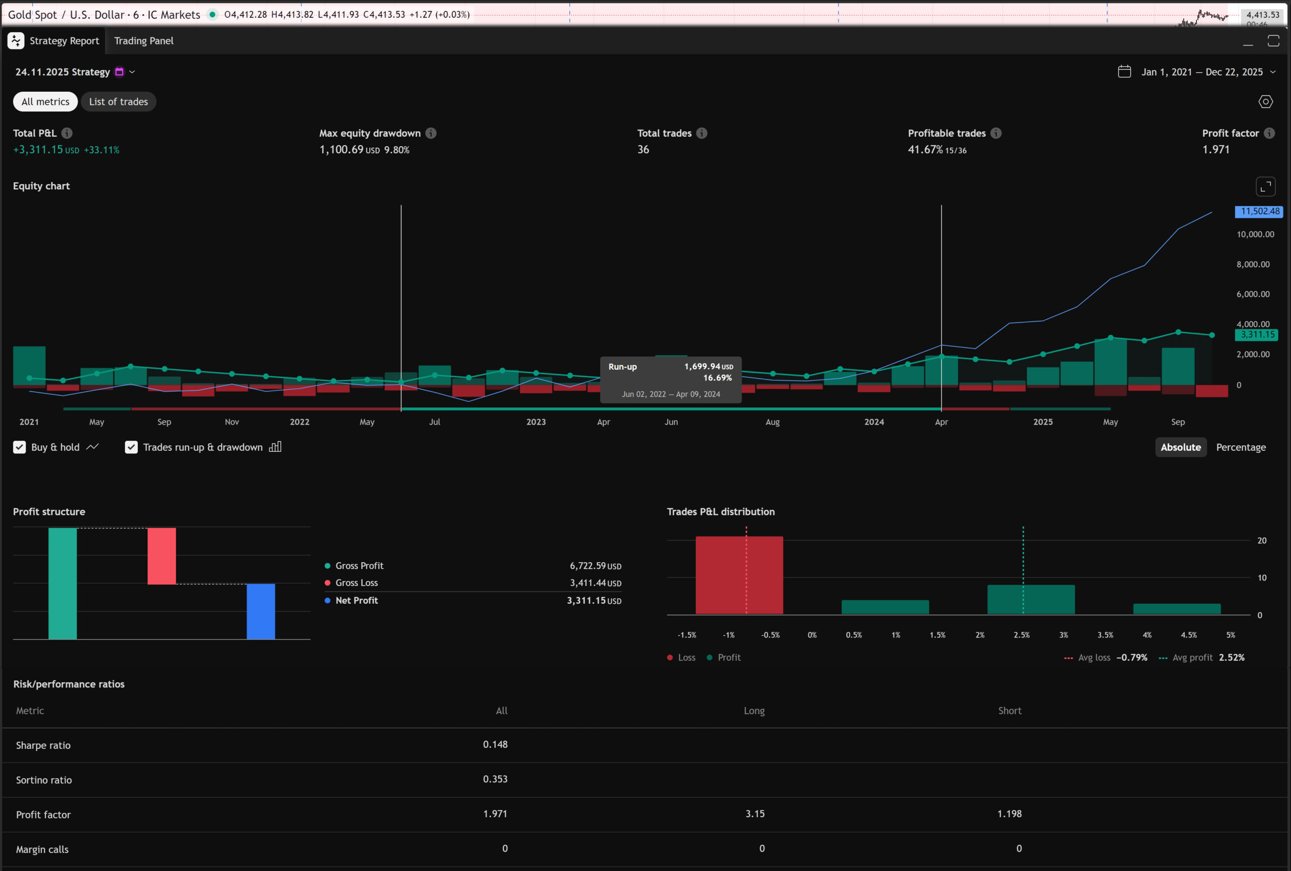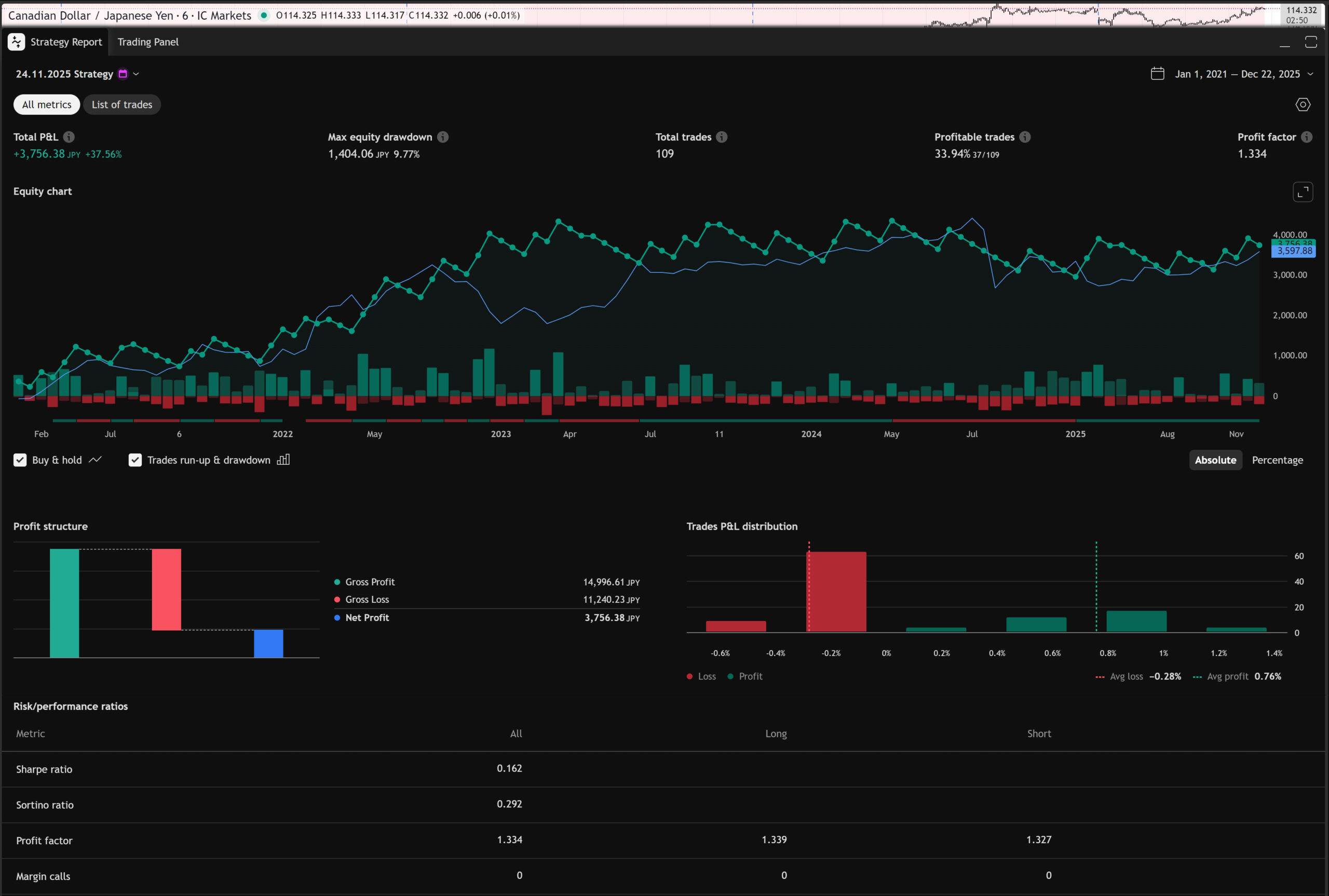 PF:1.334 | Profitable trades:33.94% | Max Drawdown:9.77%