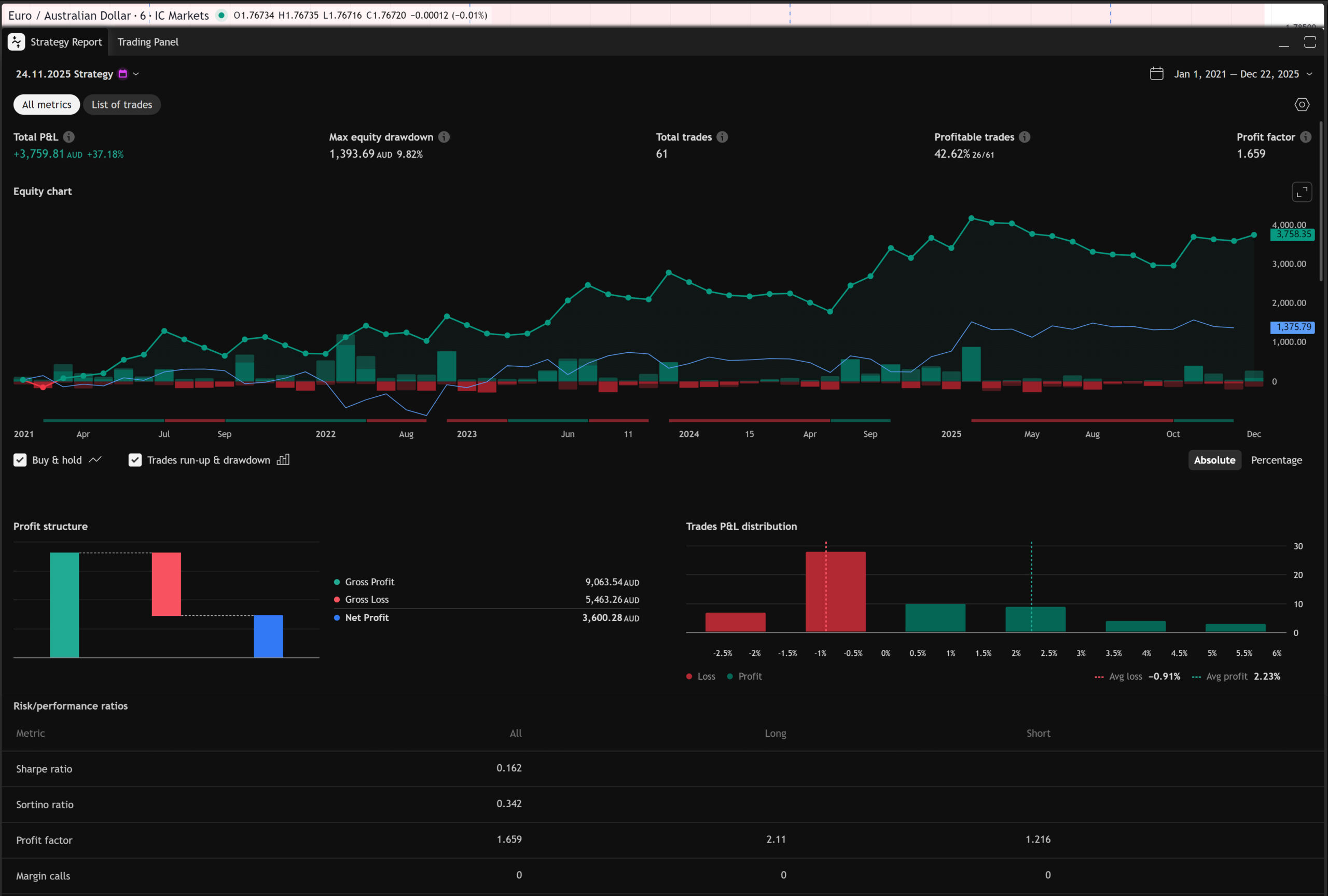 PF:1.659 | Profitable trades:42.62% | Max Drawdown:9.82%