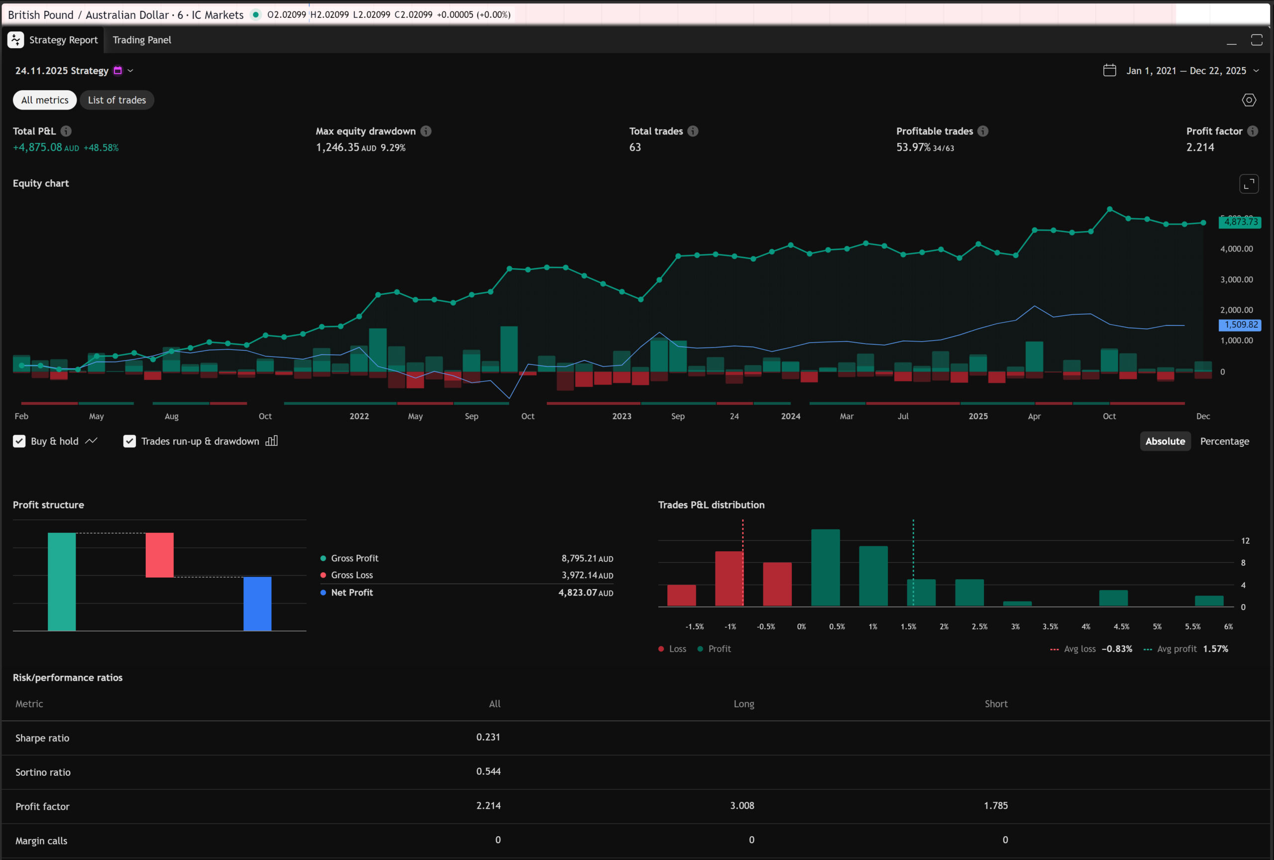 PF:2.214 | Profitable trades:53.97% | Max Drawdown:9.29%