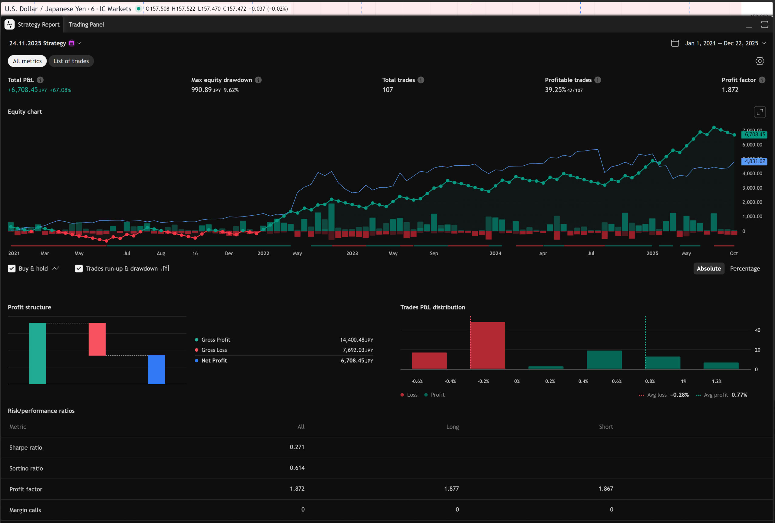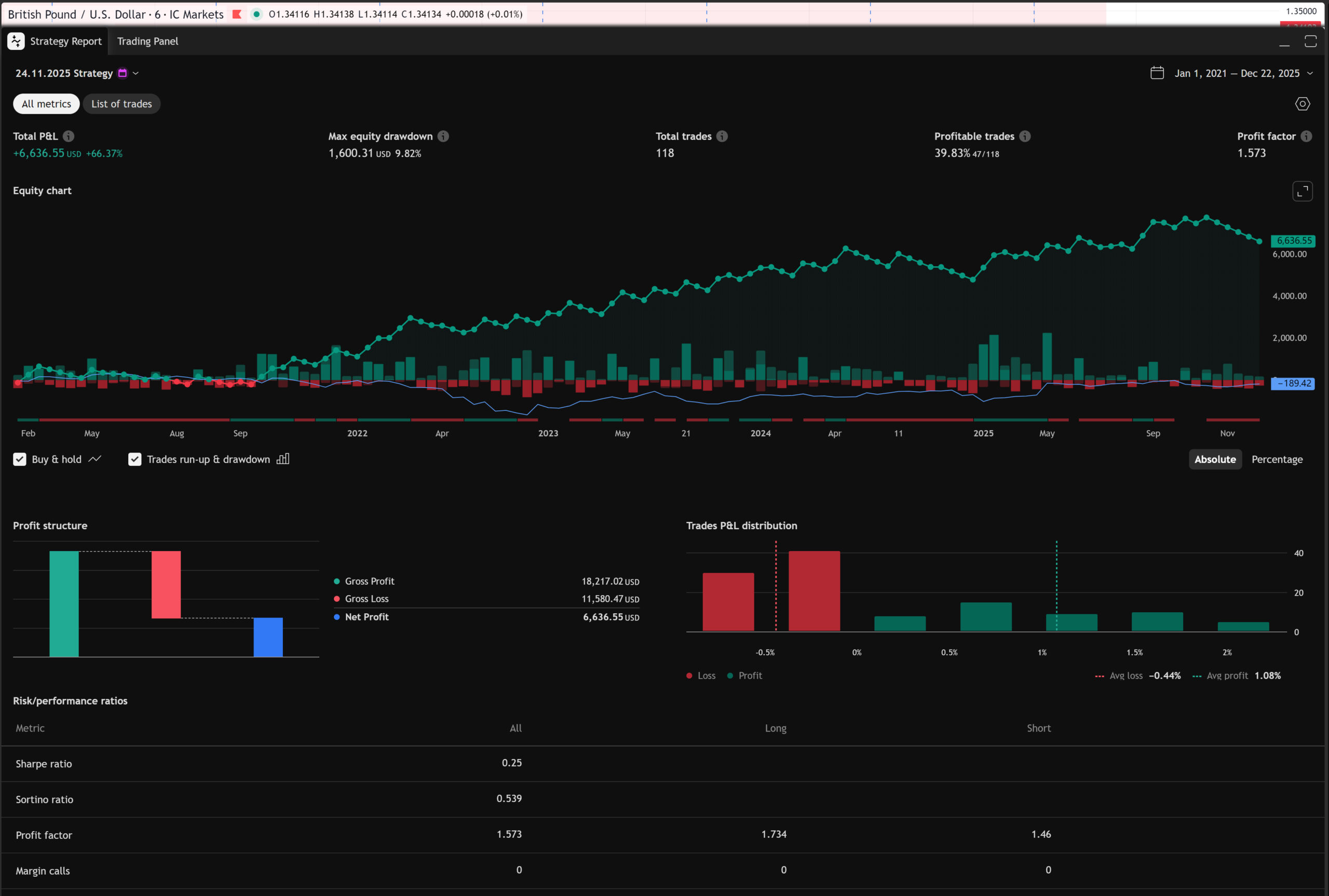 PF:1.573 | Profitable trades:39.83% | Max Drawdown:9.82%
